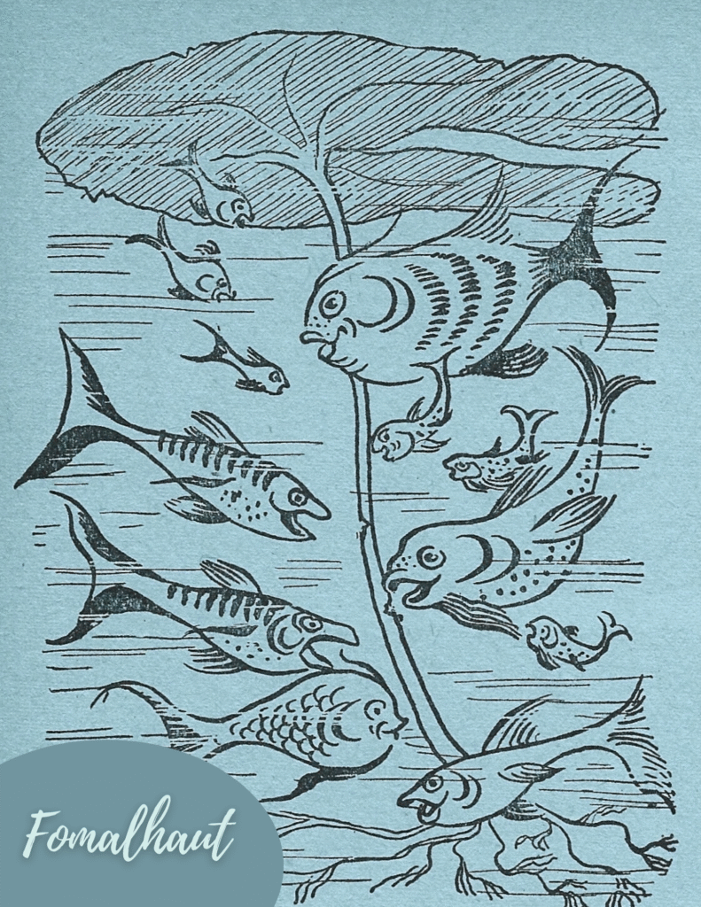 The star story this month is a personal favorite of mine, Fomalhaut. The Watcher of the South holds his own and reminds us to check in with the flow of our intuition. The waters run deep here. Working with this royal star can help us navigate the waters with courage if we so choose it.